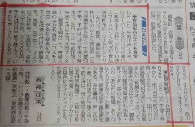 新聞掲載(令和8年3月14日)