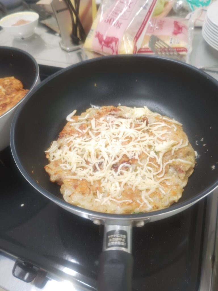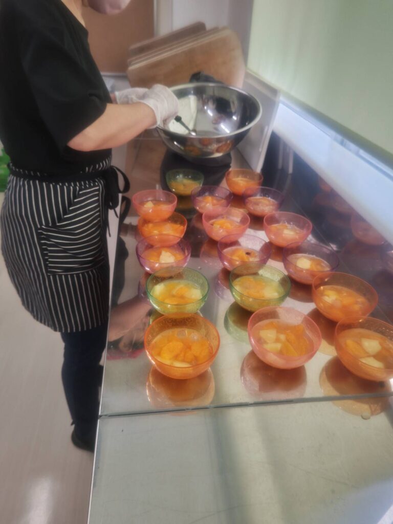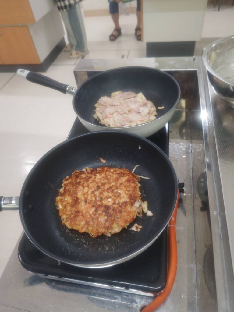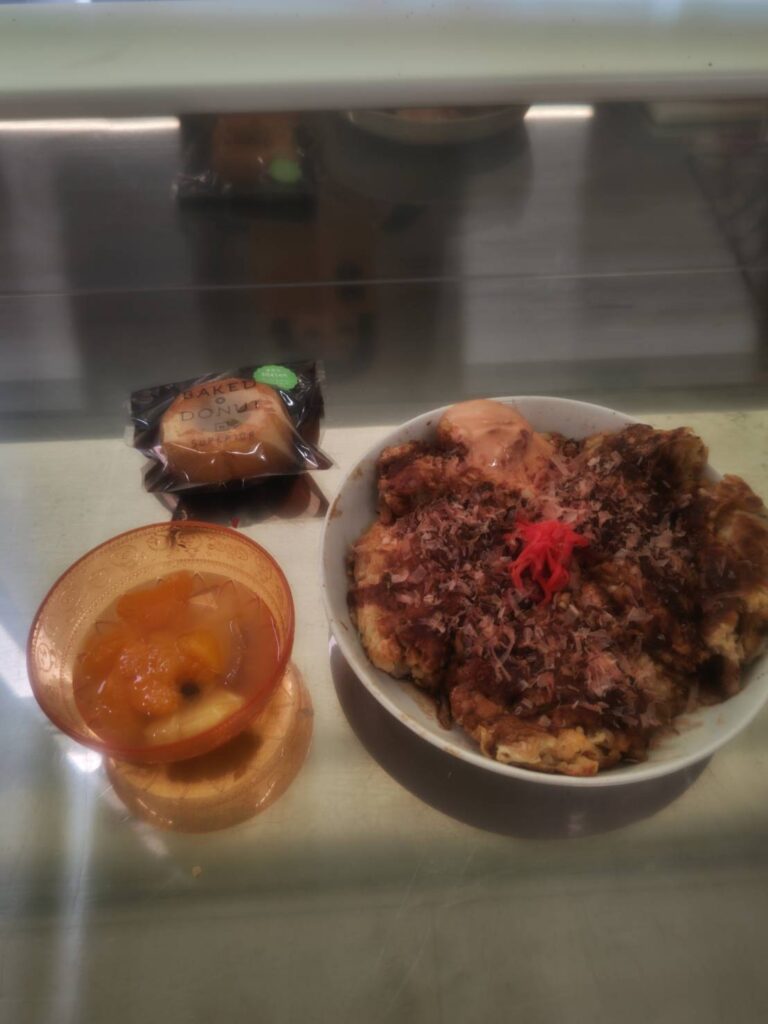 メニューは、お好み焼き、フルーツポンチ、ドーナツです。