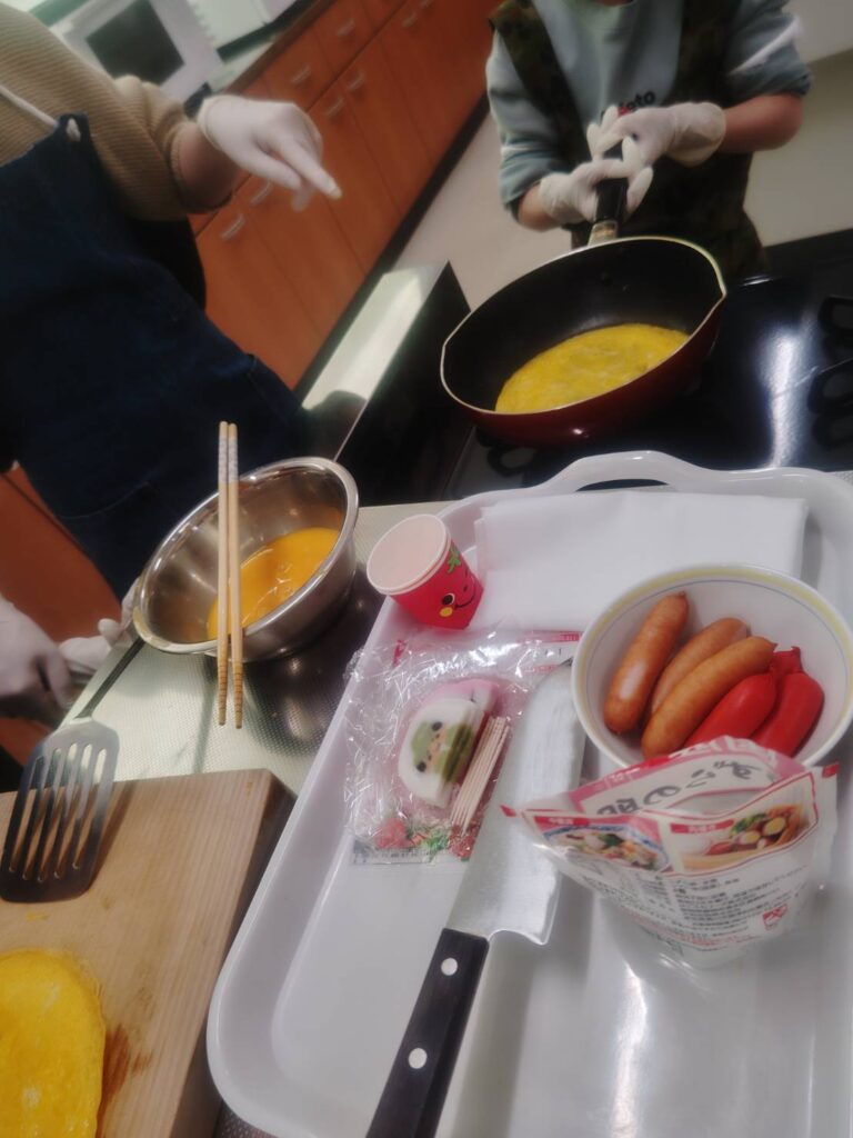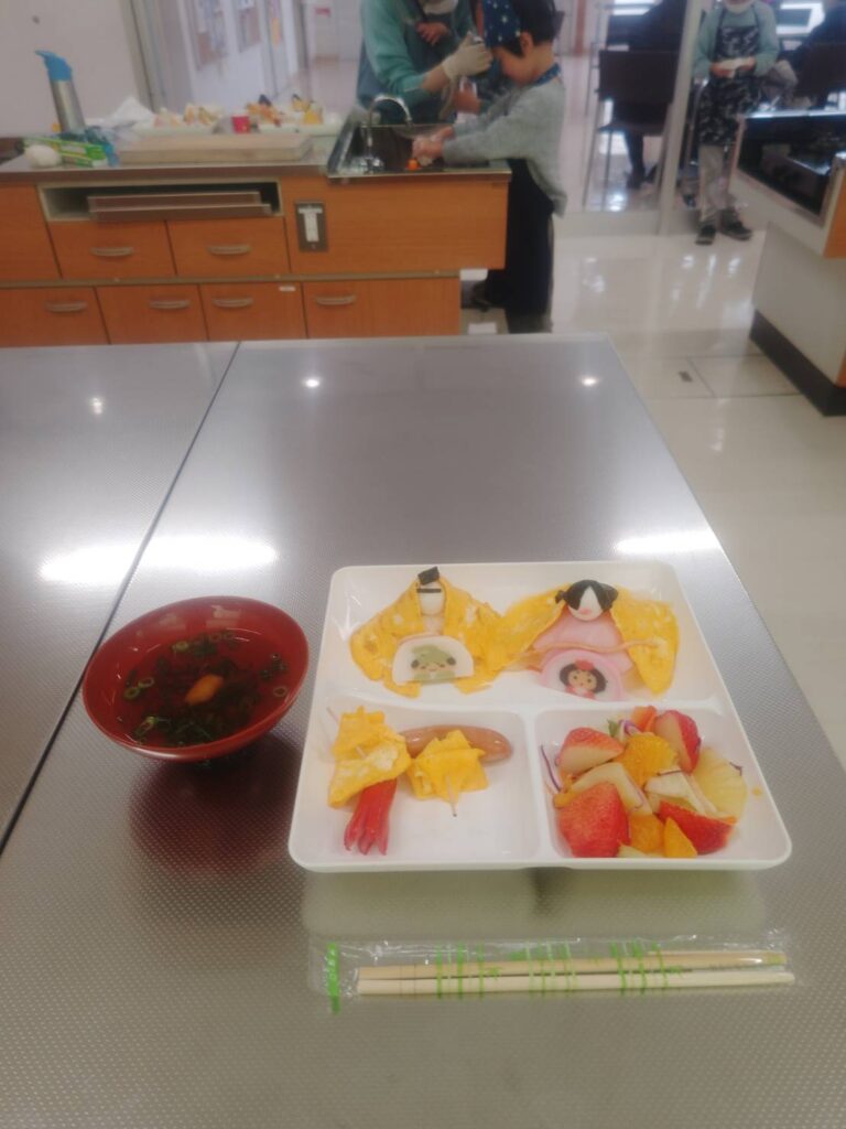 メニューは、ひな寿司(お内裏様とお雛様)タコさんウインナー、フルーツサラダなどを作りました。